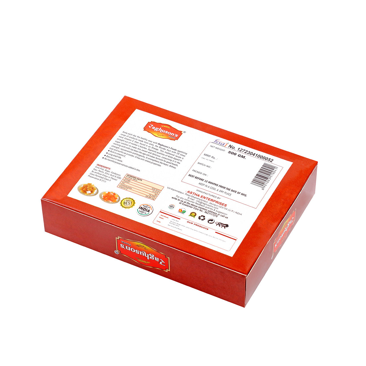 INGREDIENTS: AMLA PULP, SUGAR, CARDAMON, KAJU, CITRIC ACID(E-330), NO ARTIFICIAL COLOUR OR FLAVOUR CONTAINS PERMITTED CLASS || PRESERVATIVES (E-211)