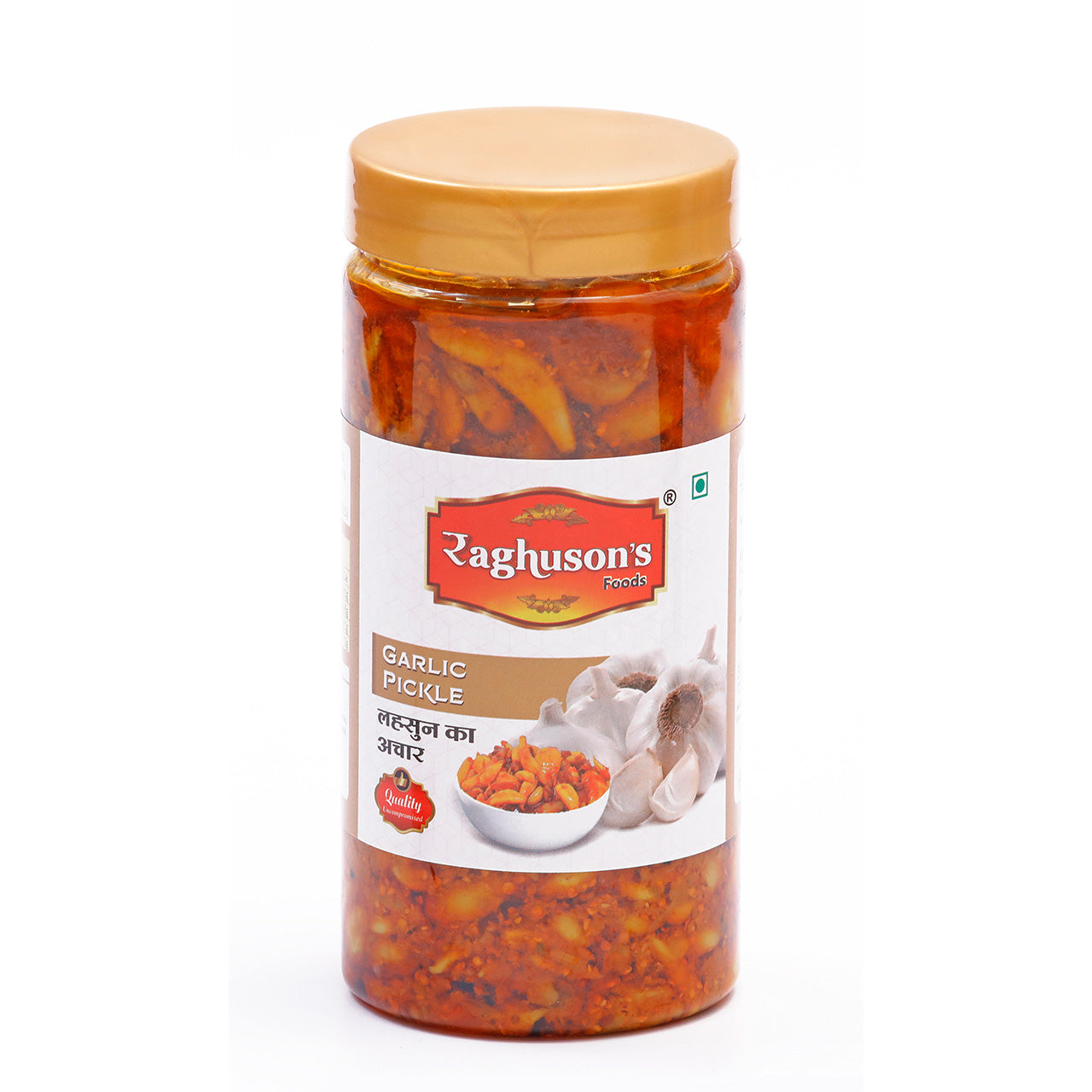 INGREDIENTS: Fresh Garlic, Lidized Salt, Mustard oil, Fenugreek, Spices & Acidity Regulator (E-260) Contains) Permitted Class || Preservatives (E-211)